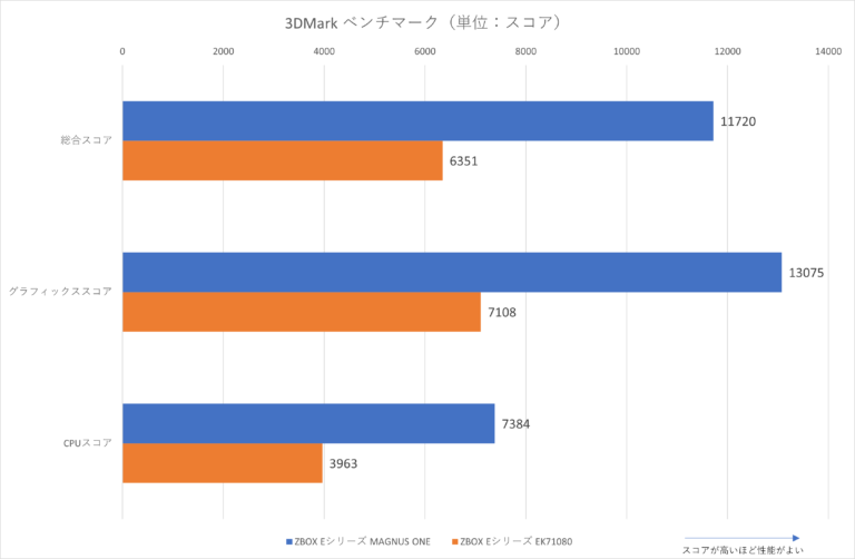 ■ベンチマーク比較:ZBOX MAGNUS ONE(2021) VS    ZBOX EK71080(2018)