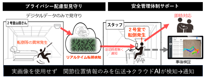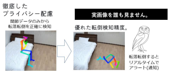 大槻さんCare Visionサービスが優れている点としてはボーンモデルをベースとして転倒を検知するシステムであることです。