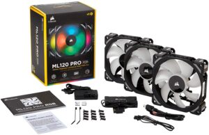 →Corsair ML120 PRO RGB 3 Fan Pack with Lighting Node PRO PCケースファン