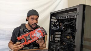 ZOTACスタッフのヘルプがあったとはいえ、ほぼ詰まることなく、初めての自作PCを完成させたダンテさんにはちょっと驚いた中の人たち。