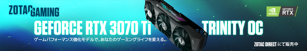 3月16日より新たにZOTAC Directにてグラフィックスカード「ZOTAC GAMING GeForce RTX 3070 Ti Trinity OC」の取り扱いがスタートしました。