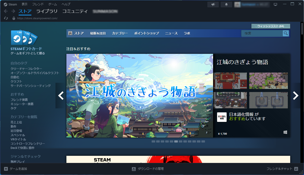 Steamでは標準的に、ランチャーが起動し、人気ゲームストアなどが表示されます。自身のライブラリからゲームを選択し、起動するという一連の操作が必要です。マウスでの操作は簡単ですが、リビングのソファーに座っている場合は別です。そのような場合には、コントローラでの操作が最適です。
