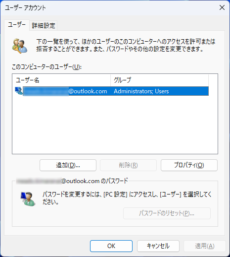 3)「ユーザーアカウント」で「ユーザーがこのコンピューターを使うには、ユーザー名とパスワードの入力が必要」が表示されていれば 13) に移動、表示されていなければ 4)を確認