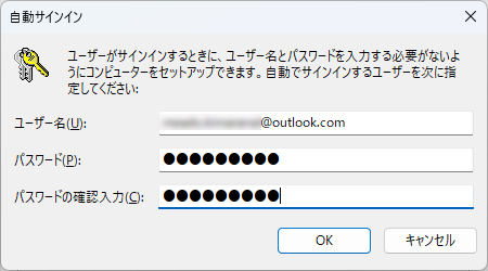 14)Microsoftアカウントと11)で入力したパスワードを入力、「OK」を押して終了。