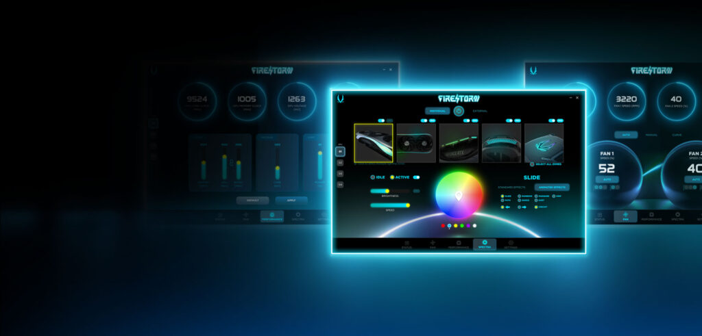 ZOTAC製品で採用されているLEDライティングを制御する機能です。今回発売された全製品に搭載されており、カスタマイズアプリのFIRESTORMを介して、ユーザーが自由にLEDライティングをカスタマイズできます。