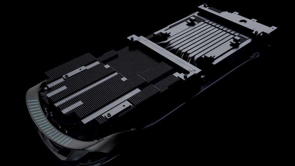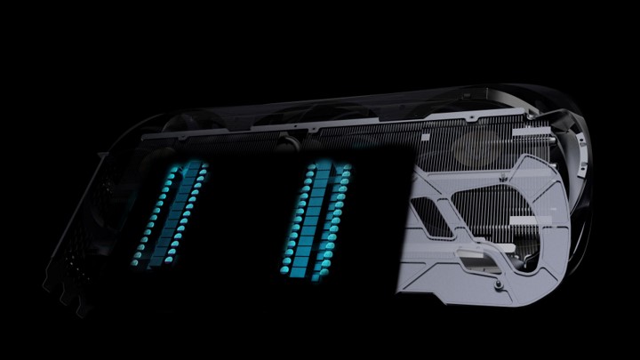 さらにヒートシンクはGPUボードの長さを超える巨大なアルミニウムフィンを搭載し、厚さも従来製品より最大30%増加。9本の銅製ヒートパイプにより効率的な冷却を実現しています。