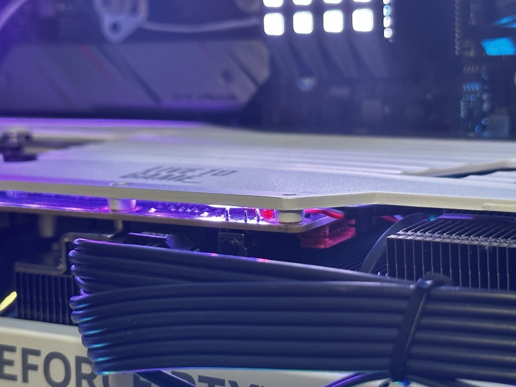 8ピンは1口で最大150Wなので、最大消費電力が320WとされているGeForce RTX 4080では、PCI-Expressスロットからの供給と合わせれば、計算上では8ピン×2でまかなえます。しかしGeForce RTX 4080では、GeForce RTX 4090でも採用した12VHPWRを使うことになりました。オーバークロック等により消費電力が増えた時にも、12VHPWRであれば余裕をもって対応できます。