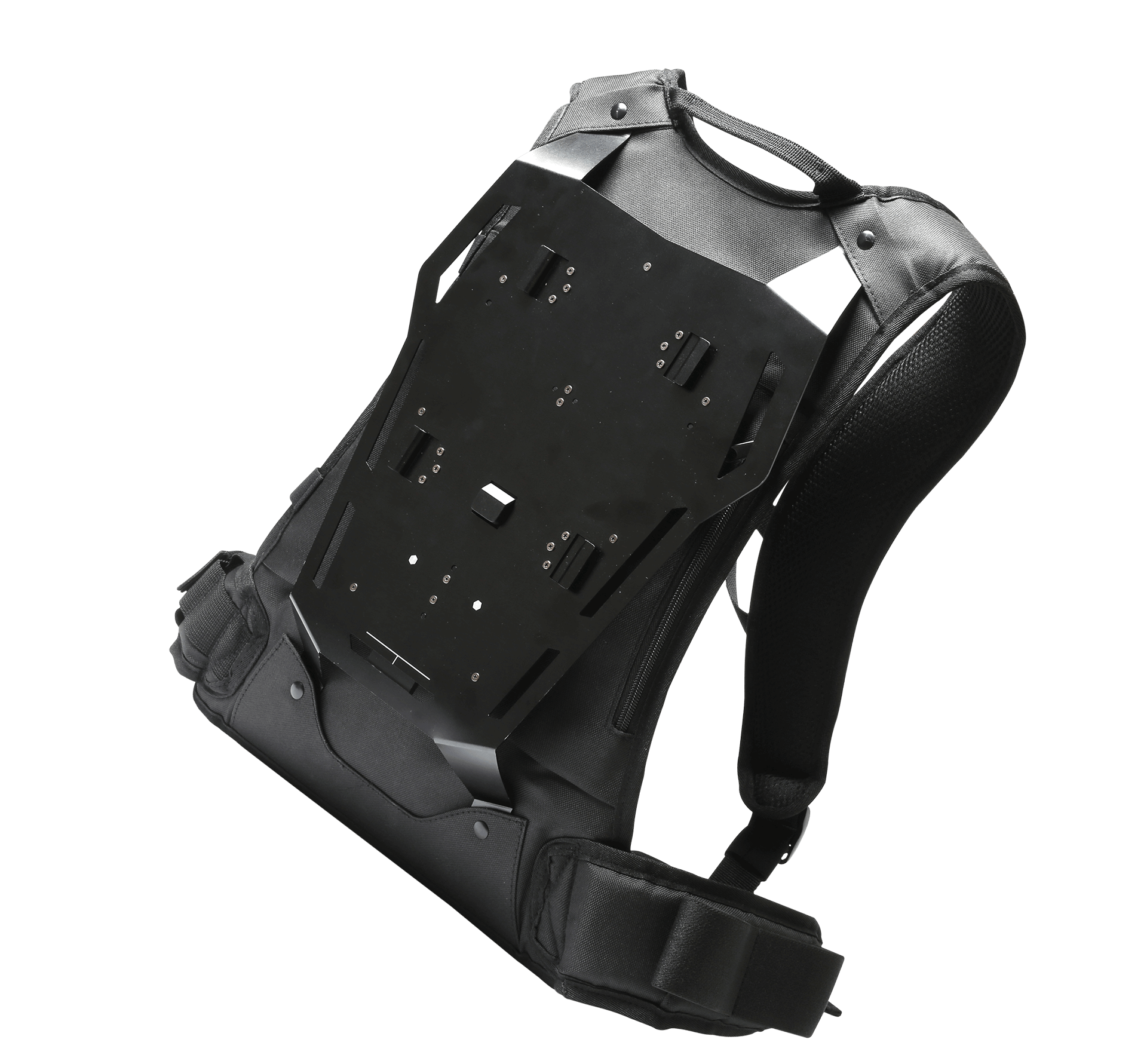 VR GO 2.0は長時間のVR体験を想定してデザインされています。重量は均一に分配され、背中のパッドやショルダーストラップを追加。背中のサポーターの長さも拡張し、VR GO 2.0は体にかかる負担を大きく軽減しています。