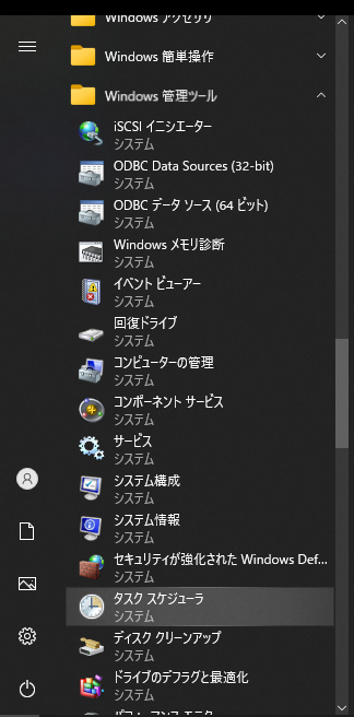 “スタート” -> “Windows 管理ツール” -> “タスク スケジューラ“をクリック