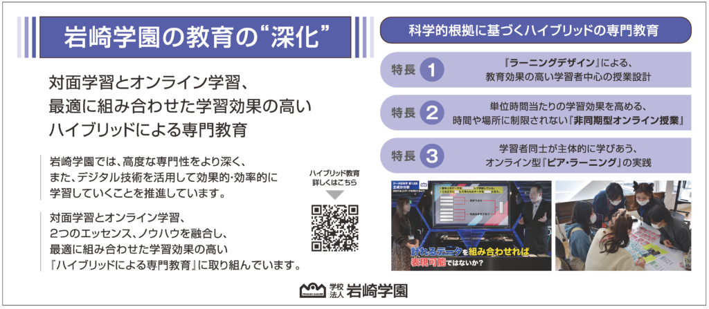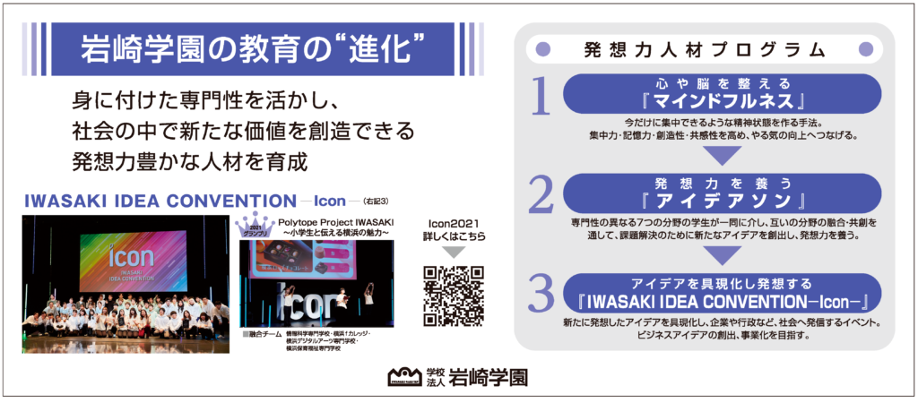 「学校法人岩崎学園は、社会と共に、人と共に“教育から共育”をめざし、時代に即した教育システムを創造・提供することを使命としてきました。